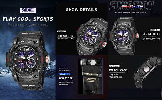 SMAEL Men's Military Sports Watch 8007 Waterproof Digital Quartz Wristwatches