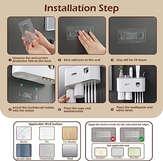 Toothbrush Holder Wall Mounted Automatic Toothpaste Squeezer
